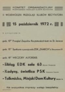 Tytuł: II Wojewódzki Przegląd Klubów Recytatora - afisz