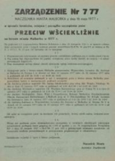 Tytuł: Szczepienia Ochronne Przeciwko Wściekliźnie Na Terenie Miasta Malborka - afisz