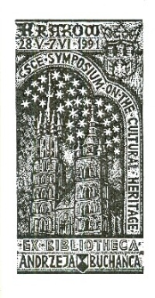 Kompozycja autorstwa polskiego artysty Andrzeja Buchańca wykonana z okazji obchodów Krakowskiego Sympozjum na temat dziedzictwa kulturowego Krakowie w 1991 r. Technika wykonania - linoryt, wymiary: 118 x 58 mm.