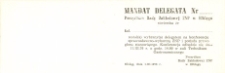 Prezydium Rady Zakładowej Związku Nauczycielstwa Polskiego (ZNP) w Elblągu przygotowało Konferencję Sprawozdawczo-wyborczą Rady Zakładowej. W ramach sprawniejszego przeprowadzenia tych wyborów przygotowano wcześniej druki "Mandatu Delegata Nr..." Konferencja odbyła się 11.03.1976 r. o godz. 14.00 w auli ówczesnego Technikum Gastronomicznego przy ulicy Armii Czerwonej (obecnie Królewieckiej). Pod dokumentem podpisało się Prezydium Rady Zakładowej ZNP w Elblągu w dniu 01.03.1976 r. Na stronie tytułowej mandatu znajduje się kolorowy emblemat ZNP. W zbiorach Biblioteki Elbląskiej znajduje się jeszcze jeden dokument dotyczący tej konferencji - zaproszenie.