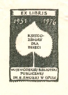 Ekslibris autorstwa polskiego artysty plastyka Janusza Młynarskiego zaprojektowany dla Wojewódzkiej Biblioteki Publicznej im. E. Smółki w Opolu. Tematem kompozycji jest biały liść na czarnym tle z napisem „Księgozbiory dla dzieci”. Ekslibris wydany z okazji jubileuszu 25-lecia istnienia biblioteki. Technika wykonania: tusz-druk (T), wymiary: 77 x 52 mm.