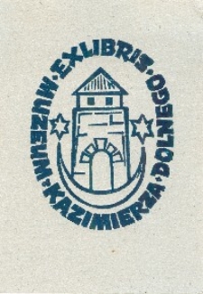 Ekslibris autorstwa Zbigniewa Dolatowskiego zaprojektowany dla Muzeum Nadwiślańskiego w Kazimierzu Dolnym. Tematem kompozycji jest herb miasta - półksiężyc, na którego rogach umieszczone są gwiazdy sześcioramienne, pośrodku umieszczona wieża, z otwartą bramą. Wokół herbu nazwa muzeum. Całość w owalu. Wymiary ekslibrisu: 55 x 41 mm.