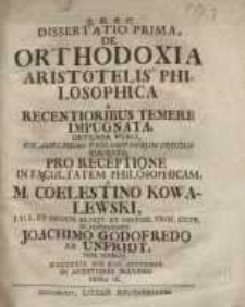 Tytuł: Dissertatio prima, de orthodoxia Aristotelis philosophica a recentioribus temere impugnata ...