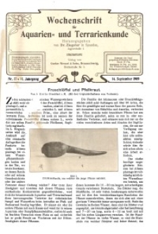| 1909-09-14, Wochenschrift für Aquarien und Terrarienkunde, 6. Jg. 1909, Nr. 37. | 11 paź 2018 |