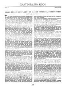 Niemiecki miesięcznik poświęcony sztuce ogrodniczej i florystyce, przeznaczony, jak głosił podtytuł, zarówno dla amatorów-miłośników ogrodnictwa i kwiatów, jak i dla zawodowych ogrodników. „Gartenbau im Reich” („Ogrodnictwo w Rzeszy”) ukazywał się w czasach III Rzeszy, był kontynuacją czasopisma „Gartenschönheit”, założonego w 1920 r. przez Karla Foerstera (1874-1970) – wybitnego ogrodnika, hodowcę bylin i filozofa ogrodów. W III rzeszy nawet tak zdawałoby się apolityczna dziedzina twórczości jak sztuka ogrodnicza nie mogła rozwijać się niezależnie. Z jednej strony sztukę ogrodniczą próbowano przepoić ideologią i upolitycznić, świadczy o tym m. in. artykuł „Gärten in der Landschaft” w styczniowym numerze z 1942 r., w którym autor twierdzi, iż niemiecki ogród winien jest naśladować naturę niemieckiego krajobrazu, z jego zmiennością, bogactwem i urozmaiceniem czy fotografie dziewcząt wręczających bukiety kwiatów żołnierzom wysyłanym na front. Z drugiej strony uprawa kwiatów jako niepraktyczna i mało utylitarna ustąpić musiała warzywnictwu – we wrześniu 1939 r. wystosowany został apel do hodowców kwiatów i roślin ozdobnych, aby część swoich upraw zastąpili nowalijkami. Do tego nakazu odnosi się artykuł „Gemüse und Blumen” w numerze ze stycznia 1942, którego autor twierdzi, iż hodowcy kwiatów dobrowolnie poddali się nieuniknionemu zarządzeniu, gdyż kwestia wyżywienia Wehrmachtu i narodu jest decydującą dla rozstrzygnięć wojennych. W okresie wojennym obok artykułów o ogrodach i florystyce zaczęły się także ukazywać przyczynki na takie tematy, jak duża zawartość witaminy C w owocach rokitnika. Czasopismo bogato ilustrowane (w tym kolor.), z dużą ilością reklam.