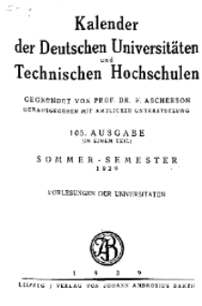 Tytuł: Kalender der Deutschen Universitäten und Technischen Hochschulen 1929