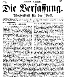 | 1865-02-18, Die Verfassung : Wochenblatt für das Volk, Sonnabend, 18. Februar, Nr 7, 1865 | 11 paź 2018 |