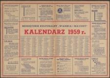 Kalendarz z 1959 roku dołączony do czasopisma społeczno-kulturalnego "Warmia i Mazury". Obok głównego kalendarza reklamy firm i zakładów w Olsztynie, Kętrzynie, Ornecie, Mrągowie, Nidzicy i Bartoszycach.