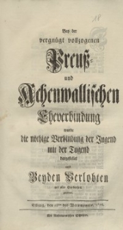| 1756, Bey der vergnügt vollzogenen Preuss und Achenwallischen Eheverbindung [...] und Beyden Verlobten... | 7 kwi 2017 |
