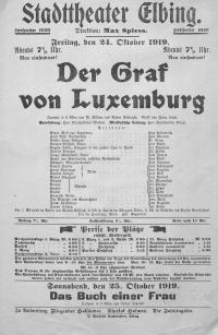 Afisz teatralny operetki "Hrabia Luxemburg" wystawionej 24 października 1919 roku.