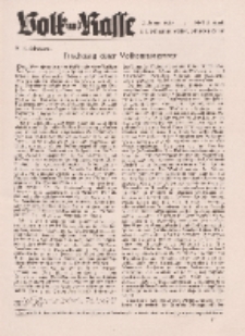 Ilustrowany miesięcznik "Volk undRasse" rozpoczął działalność w 1925 roku. Była to popularna seria zawierająca artykuły dotyczące różnych aspektów rasowych. Na łamach czasopisma dyskutowano o tematyce medycznej, badaniach archeologicznych, populacji prehistorycznej (w tym pierwotnych Niemiec) oraz kulturze i folklorze. Założycielem nazistowskiego czasopisma był Julius Friedrich Lehmann (1864-1935), który utworzył w Monachium wczesne centrum antysemickie. Większość materiału opisywała rasy germańskie w najbardziej korzystnym świetle. W Republice Weimarskiej Lehmann był również zwolennikiem Narodowej Socjalistycznej Partii Robotniczej (NSDAP). W 1934 r. W 70. rocznicę urodzin otrzymał wiele odznaczeń, w tym Orła Niemieckiej Rzeszy. Znaczna część opublikowanych przyczynków przyczyniła się do powstania nazistowskich ideologii, w tym idei przymusowej sterylizacji osób sklasyfikowanych jako "gorsze". Pod hasłem „higieny rasowej” już w XIX w. dyskutowano w medycynie i antropologii o możliwości izolowania pewnych grup społecznych. W rocznikach czasopisma nie zabrakło również ciekawych przyczynków o znanych postaciach (m.in. Lutrze, w: 1942/2), informacji o nowych odkryciach, malarstwie, artykułów o kulturze i folklorze na świecie. Teksty uzupełnione licznymi zdjęciami, ilustracjami i wykresami. Na końcu każdego numeru reklamy. Biblioteka Elbląska posiada roczniki z lat 1928, 1938-1943.
