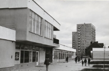 Na dwóch zdjęciach przykład budownictwa mieszkaniowego oraz handlowego w Elblągu - fragment nowej dzielnicy mieszkaniowej przy ul. Nowowiejskiej oraz kamienice przy Placu Słowiańskim.