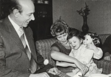 Na zdjęciu mała Ania w 1976 roku - 100 tysięczna mieszkanka Elbląga z rodzicami chrzestnymi. Autor zdjęcia - Jan Folwarczny (Gdańsk).
