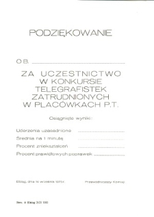 | 1975, Podziękowanie za uczestnictwo w konkursie telegrafistek zatrudnionych w placówkach P.T. - podziękowania | 25 paź 2017 |