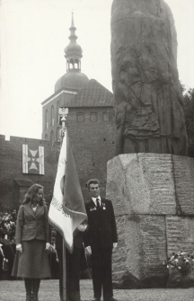 Zdjęcia z uroczystości pod pomnikiem Mikołaja Kopernika we Fromborku (niem. Frauenburg). Delegacja, w tym harcerze złożyli kwiaty pod pomnikiem wielkiego astronoma Kopernika. Dzieło autorstwa rzeźbiarza M. Weltera jest z brązu, ma 6 metrów wysokości i stoi na trzymetrowych granitowych głazach. Przed Wzgórzem Katedralnym we Fromborku postawiono go w 1973 roku. Zdjęcia wykonane przez Międzyzwiązkowy Klub Filmowy "Jantar". 2 stycznia 1960 r. z inicjatywy pracowników służby zdrowia i entuzjastów sztuki filmowania w Elblągu, powstała sekcja filmu amatorskiego, przekształcona następnie w Amatorski Klub Filmowy „Jantar” Związku Zawodowego Pracowników Służby Zdrowia. W 1963 r. Klub uzyskał lokal w Elbląskim Domu Kultury, gdzie działał już Amatorski Klub Filmowy „Profil”. W 1975 r. doszło do fuzji obu klubów i dołączenia do nich sekcji filmowej ZboWiD-u. W ten sposób uformował się Międzyzwiązkowy