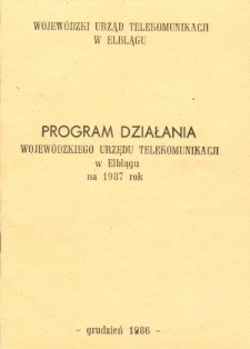 | 1986, Program działania Wojewódzkiego Urzędu Telekomunikacji w Elblągu na 1987 - broszura | 8 lis 2017 |