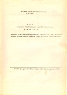 W 1975 roku Rejonowy Urząd Telekomunikacyjny w Elblągu (RUT) wydał druk, której treścią był spis abonentów telefonicznych (wszystkich - urzędowych i prywatnych) centrali automatycznej w Starym Polu. Dokument wydrukowano jeszcze przed utworzeniem Województwa Elbląskiego w 1975 roku, ponieważ potem RUT przekształcił się w Wojewódzki Urząd Telekomunikacji w Elblągu (WUT). Ponadto z informacji na stronie tytułowej wynika, iż dokument miał być dodatkiem do spisu telefonów Województwa Gdańskiego. W druku na stronie tytułowej zaznaczono, iż dokładny termin uruchomienia centrali automatycznej zostanie podany na łamach lokalnej prasy. Na kolejnych stronach wymieniono numery kierunkowe ze Starego Pola dotyczące Elbląga, Gdańska oraz Sztumu. Numery Centrali w Lisewie, Lasowicach, Lichnowach, Miłoradzu i Szymankowie. Podano również telefony alarmowe odpowiednich służb w Malborku, jak i ponoszone koszty abonenta związane z połączeniami automatycznymi. Wymienione dalej funkcjonujące numery telefonów to prawdopodobnie nowi posiadacze telefonów, gdyż dysponujemy wcześniejszym dokumentem mówiącym dopiero o budowie centrali telefonicznej automatycznej. Posiadające telefony instytucje i osoby w Starym Polu to Suszarnia Zielonek w Jordankach, wieś Złotowo, Wojewódzkie Przedsiębiorstwo Zaopatrzenia Żuław w Wodę, Zakład Energetyczny (posterunek monterski) oraz 18 mieszkańców gminy. Podobny dokument z 1975 roku ale późniejszy, dotyczący spisu ważniejszych telefonów województwa elbląskiego funkcjonuje również na naszych stronach internetowych. Pod takim samym tytułem jak opisywany wyżej, (tylko nazwa miejscowości jest inna - Nowy Staw), zapoznamy się z innym dokumentem dotyczącym realizacji lokalnych usług telekomunikacyjnych.
