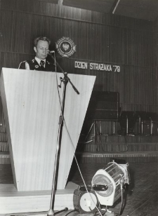Pracownia Fotograficzna Komendy Wojewódzkiej Straży Pożarnej w Elblągu uwieczniła uroczyste obchody Dnia Strażaka w Elblągu, które miały miejsce w 1979 roku. Na uroczystości razem ze strażakami świętowali zaproszeni goście - przyjaciele strażackiej braci. W czasie ceremonii zostały wręczone medale i awanse na wyższy stopień oraz wyróżnienia.