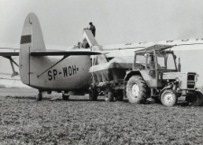 Na zdjęciu specjalny samolot rolniczy AN-2R podczas napełniania zbiorników nawozami sztucznymi, na obszarze jednego z Państwowych Gospodarstw Rolnych w województwie elbląskim. Zgodnie z wymienionymi rozporządzeniami znakami polskiej przynależności państwowej są litery "SP", dalej znak rejestracyjny, który składa się z grupy cyfr lub liter - w tym przypadku trzy litery sugerują samolot w wersji rolniczej. An-2R- przystosowany do wykonywania usług agrolotniczych, wyposażony w zbiornik na chemikalia o pojemności 1500 l, w zestawy aparatury agrolotniczej do rozsiewania (rozrzucania) środków pylistych i granulatów oraz opryskiwania cieczami.