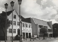 Dwa zdjęcia autorstwa Leonarda Poczwajtisa prezentują ulicę Rynek we Fromborku - widok od ul. Kopernika oraz dawne kino "Fregata".