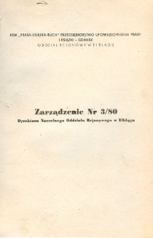 RSW (Robotnicza Spółdzielnia Wydawnicza) "Prasa-Książka-Ruch" był największym koncernem prasowym Europy Środkowo-Wschodniej, wydawnictwo powstałe w 1973 roku w wyniku połączenia Robotniczej Spółdzielni Wydawniczej „Prasa”, wydawnictwa Książka i Wiedza oraz Przedsiębiorstwa Upowszechniania Prasy i Książki „Ruch”. Obejmował swoją działalnością różne dziedziny medialne - wydawał prasę, kalendarze, pocztówki, reprodukcje dzieł sztuki, płyty i kasety z muzyką, kasety wideo. Działał w filmie czy organizował klubokawiarnie "Ruchu" na terenach wiejskich. Dzielił się na wiele agencji działających pod wyżej wymienionym szyldem, dużą część zysków przynosił mu kolportaż. Kolportażem na terenie Elbląga i okolic zajmował się RSW "Prasa-Książka-Ruch" Przedsiębiorstwo Upowszechniania Prasy i Książki - Gdańsk, Oddział Rejonowy w Elblągu. Biblioteka Elbląska posiada biuletyn z którym można się zapoznać na naszym Elbląskim Wortalu Historycznym - Zarządzenie Nr 3/80 ... w sprawie: wprowadzenia w życie instrukcji obiegu dokumentów. Biuletyn podobnie wydany jak - "Regulamin kontroli wewnętrznej i obiegu dokumentów", Wojewódzkiego Przedsiębiorstwa Przemysłu Zbożowo-Młynarskiego " PZZ w Elblągu, gdyż w części dotyczył również obiegu dokumentacji w przedsiębiorstwie w postaci zestawienia kart obiegu dokumentów. Druk zawierał wzory dokumentów używanych w tej firmie, podczas kolejnych etapów swojej działalności upowszechniania prasy. Na pierwszych dziewięciu stronach dokumentu znajdowała się Instrukcja w sprawie obiegu dokumentów, prawidłowego ich sporządzania, kontroli, terminowego doręczania do pionu finansowo - księgowego Oddziału Rejonowego w Elblągu. Każda kartka zawierała wzór określonego dokumentu, na określonym etapie działania firmy. Była to tzw. "Karta obiegu dokumentu", oznaczona kombinacją cyfr i liter, w kolejnej rubryce występowała nazwa dokumentu np. umowa o pracę, w następnej kto sporządzał ten dokument np. Dział Spraw Pracowniczych (DSP), oraz w następnej opis tego dokumentu. Kolejna rubryka (kontrola) obejmowała opracowanie merytoryczne działu np. DSP, oraz formalne np. Działu Finansowo-Księgowego (DF-K). Kolejna rubryka dotyczyła ilości wystawianych kopii tego dokumentu i jakim działom. Następnie opisano kolejne czynności związane z tym dokumentem - jaki dział i czym się zajmuje np. dział DSP oraz czas przeznaczony na to np. 1 dzień lub na bieżąco itd.