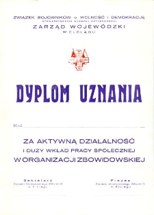 | 1976?, Dyplom Uznania za Aktywną Działalność i Duży Wkład Pracy Społecznej w Organizacji ZBoWiD - dyplom | Jan 3, 2018 |