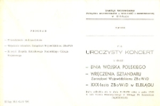 Zarząd Wojewódzki Związku Bojowników o Wolność i Demokrację w Elblągu wydał zaproszenie na Uroczysty Koncert z okazji Dnia Wojska Polskiego, Wręczenia Sztandaru Wojewódzkiemu Związku Bojowników o Wolność i Demokrację oraz 30-lecia ZBoWiD w Elblągu. Organizacja ta w czasach Polskiej Rzeczpospolitej Ludowej (PRL) była jedynym reprezentantem organizacji kombatanckich zjednoczonych wbrew sobie 2 września 1949 roku, politycznie i organizacyjnie podporządkowana PZPR (Polskiej Zjednoczonej Partii Robotniczej) do 1989 roku. Koncert odbył się 11 października 1976 roku o godzinie 17.00 w sali Teatru Dramatycznego przy Placu Kazimierza Jagiellończyka w Elblągu. W programie koncertu przewidziano przemówienie okolicznościowe, Wręczenie tegoż Sztandaru a na koniec koncert Zespołu Estradowego Pomorskiego Okręgu Wojskowego. Biblioteka Elbląska dysponuje kilkunastoma dokumentami związanymi z działalnością tej organizacji, dwa dokumenty publikowane na naszym Wortalu Historycznym dotyczą również 30-lecia tejże a jeden z nich także i uroczystości związanych z Wręczeniem tego Sztandaru.