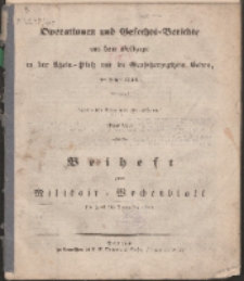 Tygodnik militarny był wiodącym czasopismem wojskowym przeznaczonym dla wojsk lądowych, marynarki i lotnictwa, ukazywał się w latach 1816-1942 w Berlinie. Czasopismo założone w 1816 r. przez pułkownika Rühle von Lilienstern (1780-1847)- szefa Departamentu Historii Wojskowości Pruskiego Sztabu Generalnego i Karla von Deckera (1784-1844)- szefa biura topograficznego Sztabu Generalnego. Magazyn otrzymał zgodę Ministerstwa Wojny na publikację oficjalnych dekretów i osobistych wiadomości pruskiego korpusu oficerskiego. Magazyn cieszył się dużym zainteresowaniem wśród czytelników. Zakres tematyczny czasopisma obejmował zagadnienia z zakresu wojskowości, koncentrował się m.in. na tematyce historii wojen i sztuki wojennej, zjawiskach społecznych i ekonomicznych związanych z prowadzeniem działań militarnych, technikach i polityce militarnej, analizie i opisie konfliktów i działań zbrojnych, uzbrojenia, rodzajów broni i wyposażenia. Gazeta zwierała przegląd prasy i literatury fachowej, aktualności z kraju i ze świata, opisy zmian personalnych w armii, opisy obowiązujących regulacji prawnych. Materiały uzupełniano zdjęciami oraz szkicami sytuacyjnymi, dodatkowo na końcu każdego zeszytu dołączano liczne reklamy. Biblioteka Elbląska posiada roczniki z lat 1926-1930 oraz dodatek (suplement) z 1850 r. "Operationen und Gefechts=Berichte aus dem Feldzuge in der Rhein-Pfalz und im Grossherzogthum Baden im Jahre 1849: Beiheft zum Militair=Wochenblatt" - w którym znalazły się szczegółowe raporty różnych formacji wojskowych (na różnych szczeblach dowodzenia), m.in. raporty dywizji, kompanii, batalionów, regimentów czy oddziałów wchodzących w skład korpusów armii. Raporty szczegółowo opisują (m.in. godzinowo) bitwy (starcia) pod Michelbach, Gernsbach, kanonadę (ostrzał) pod Steinmauern, bitwy nad Feuerbach i Sirsschgrunde, bitwę między Kuppenheim i Muggensturm itd. Czasopismo wydawane przez Ernsta Siegfrieda Mittlera (1785–1870), pod redakcją Constantina von Altrock. W okresie wydawania czasopisma redaktorami byli m.in. Johann Christian August Wagner, Eduard von Fransecky, Karl Rudolf von Ollech, Gustav von Stiehle, Julius von Verdy du Vernois, Eggert Ludwig von Estorff, Georg Wetzell. Układ treści w tygodniku - dwukolumnowy, paginacja ciągła w obrębie dwóch kolejnych rocznikach.