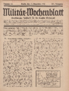 Tygodnik militarny był wiodącym czasopismem wojskowym przeznaczonym dla wojsk lądowych, marynarki i lotnictwa, ukazywał się w latach 1816-1942 w Berlinie. Czasopismo założone w 1816 r. przez pułkownika Rühle von Lilienstern (1780-1847)- szefa Departamentu Historii Wojskowości Pruskiego Sztabu Generalnego i Karla von Deckera (1784-1844)- szefa biura topograficznego Sztabu Generalnego. Magazyn otrzymał zgodę Ministerstwa Wojny na publikację oficjalnych dekretów i osobistych wiadomości pruskiego korpusu oficerskiego. Magazyn cieszył się dużym zainteresowaniem wśród czytelników. Zakres tematyczny czasopisma obejmował zagadnienia z zakresu wojskowości, koncentrował się m.in. na tematyce historii wojen i sztuki wojennej, zjawiskach społecznych i ekonomicznych związanych z prowadzeniem działań militarnych, technikach i polityce militarnej, analizie i opisie konfliktów i działań zbrojnych, uzbrojenia, rodzajów broni i wyposażenia. Gazeta zwierała przegląd prasy i literatury fachowej, aktualności z kraju i ze świata, opisy zmian personalnych w armii, opisy obowiązujących regulacji prawnych. Materiały uzupełniano zdjęciami oraz szkicami sytuacyjnymi, dodatkowo na końcu każdego zeszytu dołączano liczne reklamy. Biblioteka Elbląska posiada roczniki z lat 1926-1930 oraz dodatek (suplement) z 1850 r. "Operationen und Gefechts=Berichte aus dem Feldzuge in der Rhein-Pfalz und im Grossherzogthum Baden im Jahre 1849: Beiheft zum Militair=Wochenblatt" - w którym znalazły się szczegółowe raporty różnych formacji wojskowych (na różnych szczeblach dowodzenia), m.in. raporty dywizji, kompanii, batalionów, regimentów czy oddziałów wchodzących w skład korpusów armii. Raporty szczegółowo opisują (m.in. godzinowo) bitwy (starcia) pod Michelbach, Gernsbach, kanonadę (ostrzał) pod Steinmauern, bitwy nad Feuerbach i Sirsschgrunde, bitwę między Kuppenheim i Muggensturm itd. Czasopismo wydawane przez Ernsta Siegfrieda Mittlera (1785–1870), pod redakcją Constantina von Altrock. W okresie wydawania czasopisma redaktorami byli m.in. Johann Christian August Wagner, Eduard von Fransecky, Karl Rudolf von Ollech, Gustav von Stiehle, Julius von Verdy du Vernois, Eggert Ludwig von Estorff, Georg Wetzell. Układ treści w tygodniku - dwukolumnowy, paginacja ciągła w obrębie dwóch kolejnych rocznikach.