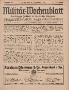 Tygodnik militarny był wiodącym czasopismem wojskowym przeznaczonym dla wojsk lądowych, marynarki i lotnictwa, ukazywał się w latach 1816-1942 w Berlinie. Czasopismo założone w 1816 r. przez pułkownika Rühle von Lilienstern (1780-1847)- szefa Departamentu Historii Wojskowości Pruskiego Sztabu Generalnego i Karla von Deckera (1784-1844)- szefa biura topograficznego Sztabu Generalnego. Magazyn otrzymał zgodę Ministerstwa Wojny na publikację oficjalnych dekretów i osobistych wiadomości pruskiego korpusu oficerskiego. Magazyn cieszył się dużym zainteresowaniem wśród czytelników. Zakres tematyczny czasopisma obejmował zagadnienia z zakresu wojskowości, koncentrował się m.in. na tematyce historii wojen i sztuki wojennej, zjawiskach społecznych i ekonomicznych związanych z prowadzeniem działań militarnych, technikach i polityce militarnej, analizie i opisie konfliktów i działań zbrojnych, uzbrojenia, rodzajów broni i wyposażenia. Gazeta zwierała przegląd prasy i literatury fachowej, aktualności z kraju i ze świata, opisy zmian personalnych w armii, opisy obowiązujących regulacji prawnych. Materiały uzupełniano zdjęciami oraz szkicami sytuacyjnymi, dodatkowo na końcu każdego zeszytu dołączano liczne reklamy. Biblioteka Elbląska posiada roczniki z lat 1926-1930 oraz dodatek (suplement) z 1850 r. "Operationen und Gefechts=Berichte aus dem Feldzuge in der Rhein-Pfalz und im Grossherzogthum Baden im Jahre 1849: Beiheft zum Militair=Wochenblatt" - w którym znalazły się szczegółowe raporty różnych formacji wojskowych (na różnych szczeblach dowodzenia), m.in. raporty dywizji, kompanii, batalionów, regimentów czy oddziałów wchodzących w skład korpusów armii. Raporty szczegółowo opisują (m.in. godzinowo) bitwy (starcia) pod Michelbach, Gernsbach, kanonadę (ostrzał) pod Steinmauern, bitwy nad Feuerbach i Sirsschgrunde, bitwę między Kuppenheim i Muggensturm itd. Czasopismo wydawane przez Ernsta Siegfrieda Mittlera (1785–1870), pod redakcją Constantina von Altrock. W okresie wydawania czasopisma redaktorami byli m.in. Johann Christian August Wagner, Eduard von Fransecky, Karl Rudolf von Ollech, Gustav von Stiehle, Julius von Verdy du Vernois, Eggert Ludwig von Estorff, Georg Wetzell. Układ treści w tygodniku - dwukolumnowy, paginacja ciągła w obrębie dwóch kolejnych rocznikach.