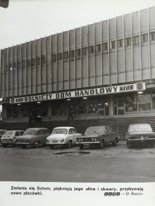 Autor zdjęcia : KAW - D. Bocian, W : Miesięczna Kronika Fotograficzna : województwo elbląskie – marzec – 1978 r. (Nr 3/78). Gdańsk. Wydaw. : Krajowa Agencja Wydawnicza. Format : 18,1 x 24,1 cm. Zdjęcie przedstawia budynek Rolniczego domu Handlowego "Kłos" w rozbudowywanym i unowocześnianym mieście Sztumie.