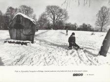 Autor zdjęcia : KAW - W. Amerski, W : Miesięczna Kronika Fotograficzna : województwo elbląskie – luty – 1979 r. (Nr 2/79). Gdańsk, Wydaw. : Krajowa Agencja Wydawnicza. Format : 27,8 x 20,8 cm. Na zdjęciu widać zjeżdżające dzieci na sankach ze stoku w Parku im. Romualda Traugutta. Obok dzieci widoczy wielki głaz z wmurowaną płaskorzeźbą R. Traugutta i tablicą informacyjną w jakich okolicznościach powstał park.