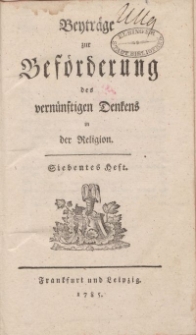Czasopismo koncentrujące się na zagadnieniach szeroko pojętej religii, doktryn i systemów religijnych, zawierające szeroki zbiór filozoficzno-religijnych opracowań, rozpraw, esejów, rozważań, moralitetów z dziedziny teologii, dogmatyki, filozofii, moralności, historii kościoła itd. Tematyka publikacji jest niezwykle bogata i różnorodna. W kolejnych zeszytach znaleźć możemy m.in. zagadnienia związane z nurtami i światopoglądami filozoficzno-religijnymi (np. deizm, teozofia, millenaryzm), analizy tekstów biblijnych, psalmów, listów apostolskich, wyjaśnienia istoty boskości, problematykę wieczności, wiary, ateizmu, wpływu religii na moralność człowieka, problematykę przemocy, historię Jezusa, kwestie dotyczące świętej księgi hinduizmu, judaizmu, Eddy starszej – najstarszego zabytku piśmiennictwa islandzkiego, będącego zbiorem pieśni poświęconych bogom mitycznym itd. W zbiorach Bibliotek Elbląskiej znajdują się publikacje z lat 1780-1785, 1787, 1789, 1790-1791, 1793, 1801-1802. Edytorem (redaktorem) periodyku do 1793 roku był Heinrich Corrodi (1752-1793) – profesor praw natury i nauki o moralności. Publikacje z lat 1801-1802, wydane już po śmierci pierwszego redaktora stanowią kontynuację poprzednich wydań, pod nieco zmienionym tytułem „Neue Beyträge zur Beförderung des vernünftigen Denkens in der Religion”. Opracowanie z 1801 roku, poświęcone jest pamięci zmarłego w 1793 roku Heinricha Corrodi i zawiera m.in. jego obszerną biografię.