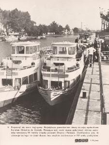 Autor zdjęcia : P. Kajmer, W: Fotorelacje Elbląskie (kontynuacja wydawanej Miesięcznej Kroniki Fotograficznej) – kwiecień – 1981 r. (Nr 4/81). Gdańsk, Wydaw.: Krajowa Agencja Wydawnicza. Format: 20,8 x 27,9 cm. Zdjęcie przedstawia dwa bliźniacze statki wycieczkowe - "Birkut" i "Łabędź" obsługujące turystów żądnych zwiedzenia kanału Elbląskiego na trasie do Ostródy. Podczas rejsu można zaznajomić się z przyrodą jeziora Drużno i jeziora Piniewo, a między nimi pokonać różnicę poziomów - 99 metrów. Różnicę pokonuje się za pomocą specjalnych pochylni a nie klasycznych śluz.