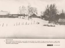 Autor zdjęcia : R. Czerniewski, W: Fotorelacje Elbląskie (kontynuacja wydawanej Miesięcznej Kroniki Fotograficznej) – grudzień – 1981 r. (Nr 12/81). Gdańsk, Wydaw.: Krajowa Agencja Wydawnicza. Format: 28,2 x 21 cm. Zdjęcie przedstawia ośnieżone zabudowania wsi w okolicach Elbląga. W grudniu tego roku wprowadzono stan wojenny, którego powodem była pogarszająca się sytuacja gospodarcza kraju. W sklepach brakło towarów i obowiązywała reglamentacja żywności (kartki żywnościowe, od kwietnia do października). W ten sposób każdy mieszkaniec kraju otrzymywał - mięso, masło, tłuszcz, mąkę, ryżu, mleko dla niemowląt. Kartki na cukier i papierosy można było zamienić między sobą. Gospodarka była na skraju przepaści, podwyżki cen żywności o 241 procent a energii o 171 procent oraz zagrożenie bezpieczeństwa energetycznego kraju wobec nadchodzącej zimy. Rolnicy nie mogli zbywać legalnie płodów rolnych i mięsa - funkcjonował "czarny rynek". Zima na wsi mogła okazać się gorsza w skutkach niż w mieście, braki w dostawie energii elektrycznej i węgla zagrażały hodowli zwierząt a to zmniejszało redystrybucję żywności w miastach.