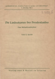| 1938, Keyser, Erich, Die Landeskarten des Preuβenlandes. Eine Bestandsaufnahme Von E. Keyser | 27 paź 2018 |