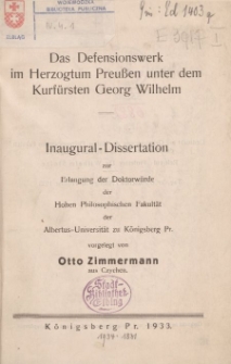 | 1933, Zimmermann, Otto, Das Defensionswerk im Herzogtum Preuβen unter dem Kurfürsten Georg Wilhelm | 11 gru 2018 |