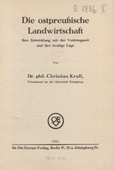 | 1931, Krull, Christian, Die ostpreβische Landwirtschaft. Ihre Entwicklung seit der Vorkriegszeit und ihre heutige Lage | Feb 14, 2019 |