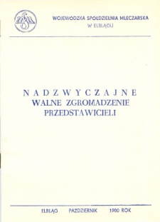 Tytuł: Nadzwyczajne Walne Zgromadzenie Przedstawicieli Wojewódzkiej Spółdzielni Mleczarskiej w Elblągu - broszura