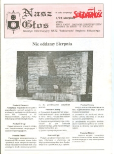 | 1994, Nasz Głos. Biuletyn Informacyjny NSZZ "Solidarność" Regionu Elbląskiego, 1994, nr 5 | Aug 28, 2019 |
