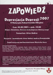 Prezydent Miasta Elbląga przy udziale Muzeum Archeologiczo-Historycznego w Elblągu (użyczającego miejsce) zorganizował imprezę dla mieszkańców Elbląga pod nazwą "Deprecjacja Depresji 2007" czyli II Wakacyjnego Kabaretowiska Elbląskiego. Był to logiczny ciąg dalszy widowiska kabaretowego z poprzedniego 2006 roku. Scenariusz przygotował Artur Andrus, reżyseria i prowadzenie tegoż i Andrzeja Poniedzielskiego. W programie uczestniczył zespół muzyczny pod kierownictwem Wojciecha Steca. W koncercie brały również udział gwiazdy polskiej estrady m.in. Ewa Bem, Edyta Jungowska, Agnieszka Dygant, Andrzej Grabowski, Marek Siudym, Tomasz Jachimek, Robert Górski z Kabaretu Moralnego Niepokoju czy Kabaret Hrabi. Mottem całej zabawy jest podniesienie mieszkańców "geograficznej depresji" z depresji psychicznej poprzez dobrą zabawę i usypania rzeczywistego kopca przez uczestników imprezy nazwanego - "Kopcem antydepresji". Bilety na imprezę rozprowadzało Centrum Sztuki - Galeria El w Elblągu.