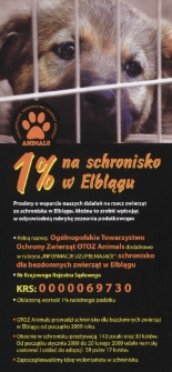 Z roku 2009 pochodzi druk reklamowy, będący formą prośby o datek na rzecz Schroniska Dla Bezdomnych Zwierząt w Elblągu mieszczącego się przy ulicy Królewieckiej 233. Schroniskiem tym zajmuje się Ogólnopolskie Towarzystwo Ochrony Zwierząt (OTOZ Animals). Z treści prośby dowiadujemy się o możliwości przekazania 1 % podatku na rzecz tej organizacji pożytku publicznego z ukierunkowaniem na schronisko w Elblągu Na dokumencie widnieje stylizowany emblemat OTOZ (Ogólnopolskie Towarzystwo Ochrony Zwierząt) Animals w kształcie odcisku psiej łapy.