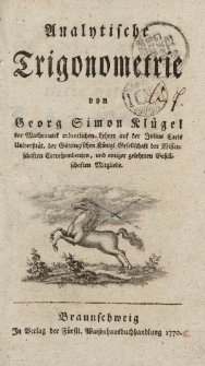 Publikacja z dziedziny matematyki a ściślej trygonometrii wydana w 1770 roku w Brunschwiku (niem. Braunschweig) autorstwa Georga Simona Klügel (1739-1812) - niemieckiego matematyka i fizyka, wykładowcę akademickiego, członka wielu towarzystw i instytucji naukowych (m.in. Göttinger Akademie der Wissenschaften, Preußische Akademie der Wissenschaften w Berlinie, Russische Akademie der Wissenschaften w Sankt Petersburgu). W opracowaniu znajdujemy opis zagadnień z zakresu trygonometrii płaskiej i sferycznej m.in. funkcji trygonometrycznych, ich własności i zastosowania, analizę matematyczną funkcji trygonometrycznych m.in. jako rozwiązania pewnych równań różniczkowych etc.
