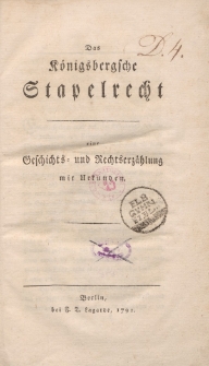 | 1791, Das Königsbergsche Stapelrecht eine Geschichts - uns Rechtserzählung mit Urkunden | 19 lut 2020 |