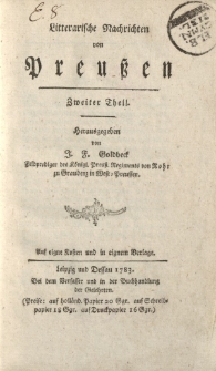 Tytuł: Literarische Nachrichten von Preußen. Zweiter Theil