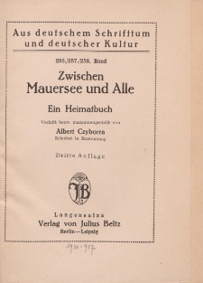 Tytuł: Zwischen Mauersee und Alle. Ein Heimatbuch Verfaßt bezw. zusammengestellt von Albert Czyborra […]