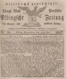 Tytuł: Elbingsche Zeitung, No. 58 Donnerstag, 19 Juli 1827