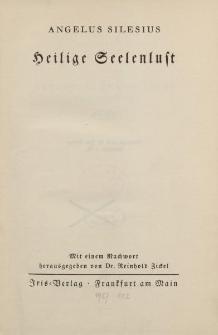 Heilige Seelenlust, pol. „ Święte pragnienia duszy”(Frankfurt nad Menem, 1926) - jeden z najwybitniejszych zbiorów pieśni religijnych europejskiego baroku. Pieśni, dostosowane do cyklu roku liturgicznego i przeznaczone na różne modlitewne okazje, cieszyły się wielką popularnością i znalazły się w kancjonałach zarówno katolickich jak protestanckich. Ich autorem jest tworzący w języku niemieckim śląski poeta religijny i mistyk Angelus Silesius, właściwie Johannes Scheffler, pol. Anioł Ślązak (1624-1677), który urodził się i tworzył we Wrocławiu. Silesius uczęszczał do wrocławskiego ewangelickiego Gimnazjum św. Elżbiety (St. Elisabeth-Gymnasium), gdzie duży wpływ wywarł na niego jego nauczyciel, poeta Christoph Köler (1602–1658), dzięki któremu podjął też pierwsze próby poetyckie. Od 1643 r. studiował medycynę i historię w Strasburgu, a od 1644 w Lejdzie. W Holandii spotkał pochodzącego ze Śląska teozofa Abrahama von Franckenberga (1593–1652), dzięki któremu zaczął intensywnie zajmować się kwestiami teologicznymi, czytać pisma Jakoba Böhme (1575–1624) i innych mistyków. W 1647 roku udał się do Padwy, gdzie w lipcu 1648 roku uzyskał stopień doktora filozofii i medycyny. Po powrocie do ojczyzny ponownie uległ wpływom mistycznych poetów i teologów. W latach 1649 – 1652 był osobistym lekarzem księcia Sylwiusza Nimroda Wirtemberskiego (1622–1664) w Oleśnicy. 12 czerwca 1653 roku konwertował w kościele św. Macieja we Wrocławiu na katolicyzm, otrzymał przy tym imiona Johannes Angelus. W celu odróżnienia od znanego wówczas luterańskiego teologa Johanna Angelusa przyjął przydomek Silesius, czyli Ślązak, którym sygnował własne pisma. Jako jeden z powodów przestąpienia na katolicyzm podawał tam rozczarowanie skostniałą ortodoksją luterańską, która uczuciu religijnemu oferuje twarde dogmaty zamiast żywej wiary. W 1654 r. otrzymał tytuł honorowego medyka cesarskiego jako odszkodowanie za rezygnację ze służby u ewangelickiego księcia oleśnickiego. Jednak konwersja w jego przypadku, raczej pogorszyła jego położenie niż je poprawiła. W wyniku nawrócenia na katolicyzm uwikłał się dożywotnio w spory konfesyjne. Stał się orędownikiem kontrreformacji i w mało oryginalnych pismach polemicznych próbował zawsze udowodnić legalność doktryny katolickiej i potępić protestantyzm. W 1657 r. ukazały się jego główne poezje napisane jeszcze prawdopodobnie przed konwersją i niedopuszczone do druku przez cenzurę protestancką: Epigramatyczne rymy duchowne (Geistreiche Sinn und Schlußreime) znane od rozszerzonego o Księgę Szóstą drugiego wydania w 1674 jako Cherubinowy wędrowiec (Cherubinischer Wandersmann) oraz Święta uciecha duszy albo duchowne pieśni pasterskie (Heilige Seelenlust oder Geistliche Hirtenlieder der in ihren Jesum verliebten Psyche). 29 maja 1661 roku otrzymał święcenia kapłańskie w Nysie i przez swoje kontakty z dworem wiedeńskim wymusił pozwolenie na publiczną procesję Bożego Ciała we Wrocławiu, która zabroniona tam była od 1525 roku. W 1664 roku wstąpił na służbę biskupa wrocławskiego Sebastiana von Rostock (1607–1671), z której jednak zrezygnował po dwóch latach. Osamotniony i rozgoryczony żył do śmierci w klasztorze św. Macieja w rodzinnym mieście jako lekarz wojskowy i ubogich. Po konwersji, przebywając w kręgu jezuitów, stało się dla niego jasne, że urzeczywistnienie królestwa Bożego na tym świecie możliwe jest tylko w postaci Kościoła katolickiego. Z zaciętością starał się uczynić świat znowu katolickim. Rezultatem przyjętego przez niego kierunku jest ostatnie dzieło poetyckie Zmysłowe opisanie czterech ostatnich rzeczy (Sinnliche Beschreibung der vier letzten Dinge, 1675), w którym sięga do wersów ludowych, groteskowej i drastycznej przesady w przedstawieniu piekła i katuszy. Materiał uzupełnia posłowie wydawcy Reinholda Zickela (1885-1953).
