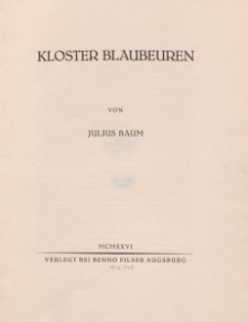 Kloster Blaubeuren (Augsburg, 1926) - publikacja z zakresu historii sztuki, architektury i budownictwa sakralnego prezentująca obszernie ilustrowany opis klasztoru w Blaubeuren (niem. Kloster Blaubeuren) - dawnej siedziby Benedyktynów w Blaubeueren (Badenia- Wirtembergia, Niemcy), w opracowaniu niemieckiego historyka sztuki Juliusa Bauma (1882-1959). Materiał został opublikowany jako trzeci tom serii niemieckich przewodników po sztuce (niem. Deutsche Kunstführer), wydawanych pod redakcją historyka sztuki Adolfa Feulnera (1884-1945). Julius Baum był niemieckim historykiem sztuki, wykładowcą uniwersyteckim i dyrektorem muzeów. Po studiach z zakresu historii sztuki na uniwersytetach w Monachium, Berlinie i Tybindze, w latach 1908-1922 pracował jako asystent i konserwator w Państwowym Muzeum Wirtembergii (niem. Württembergisches Landesmuseum) w Stuttgarcie, które nosiło wówczas nazwę „Staatssammlung für vaterländische Kunst- und Altertumsdenkmale“. Habilitował się w Stuttgarcie w 1912 r. Od 1911 był wykładowcą Kunstakademie w Stuttgarcie. W latach 1914 - 1918, jako ochotnik brał udział w I wojnie światowej. W okresie 1918-1933 był wykładowcą historii sztuki średniowiecznej na Uniwersytecie Technicznym w Stuttgarcie. Do 1933 roku był również dyrektorem Muzeum w Ulm. W tym samym roku z powodów politycznych został zmuszony do przejścia na wcześniejszą emeryturę. Po Nocy kryształowej w 1938 roku został tymczasowo internowany w obozie ochronnym w Welzheim. W 1939 roku wyemigrował do Szwajcarii.Wkrótce po zakończeniu wojny, w 1946 roku wrócił do Niemiec. Od 1947 do 1952 był dyrektorem Państwowego Muzeum Wirtembergii .Zmarł 27 października 1959 roku. Początki klasztoru w Blaubeuern sięgają roku 1085, kiedy to założono opactwo benedyktyńskie. W czasie reformacji klasztor został przejęty przez książąt Wirtembergii, a od 1556 roku pełnił rolę ewangelickiego seminarium teologicznego. Od 1817 wraz z klasztorem Maulbronn seminarium stanowi wspólną jednostkę edukacyjną znaną jako Ewangwelickie Seminarium Maulbronn i Blaubeuren (niem. Evangelische Seminare Maulbronn und Blaubeuren|Evangelischen Seminare Maulbronn und Blaubeuren). Pod względem historyczno-artystycznym kompleks dawnego klasztoru Blaubeuren stanowi ważny przykład architektury późnogotyckiej na terenie Szwabii. Zachował się niemal cały komplet zabudowań i wystrój rzeźbiarski z II połowy XV stulecia, który ma charakter późnogotycki. Kompleks klasztorny składa się z zabudowań skupionych wokół czworobocznego wirydarza otoczonego krużgankiem, kapitularza, kaplicy chrzcielnej, kaplicy Św. Małgorzaty i kościoła klasztornego pw. Św. Jana Chrzciciela z kaplicami Św. Piotra i Św. Urbana. Najważniejszą częścią kościoła jest prezbiterium nakryte sklepieniem sieciowym z cennym wystrojem, który tworzy zespół figur przyściennych, zespół stalli (dzieło Jörga Syrlina Młodszego) i wielkie retabulum ołtarza głównego w formie pentaptyku z monumentalnymi rzeźbami Michela Erharta, dekoracjami Jörga Syrlina Młodszego i malowidłami pędzla Bartholomäusa Zeitbloma.