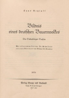Bildnis eines deutschen Bauernvolkes. Die Siebenbürger Sachsen (Berlin, Stuttgart, 1934) - publikacja stanowiąca połączenie formy tradycyjnej książki z koncepcją albumu fotograficznego (fotoksiążka), prezentująca obraz ówczesnego życia codziennego Sasów siedmiogrodzkich, w opracowaniu niemieckiego fotografa, fotoreportera i dokumentalisty Hansa Hermanna Theodora Retzlaffa (1902-1965). Materiał zawiera 96 czarno-białych, unikatowych fotografii dokumentujących, codzienne życie, kulturę ludową i obyczaje niemieckiej ludności wiejskiej osiadłej na terenach Siedmiogrodu. Retzlaff koncentruje się przede wszystkim na prezentacji oryginalnych strojów ludowych, portretach mieszkańców, wiejskich pejzażach, krajobrazach, folklorze etc. Opracowanie poprzedza krótka przedmowa Viktora Glondysa (1882-1949) - niemieckiego duchownego i teologa luterańskiego związanego Bukowiną i Siedmiogrodem, biskupa Kościoła Ewangelickiego Augsburskiego Wyznania w Rumunii w latach 1932-1941 i 1944-1945 oraz tekst uzupełniający dotyczący Sasów siedmiogrodzkich, którego autorem jest związany z Siedmiogrodem językoznawca, folklorysta i poeta gwarowy Misch Orend (1896-1976). Sasi siedmiogrodzcy (rum.Sași transilvăneni, niem. Siebenbürger Sachsen,węg. Erdélyi szászok) to ludność niemiecka osiadła na terenach Siedmiogrodu począwszy od XII wieku. Jako że w średniowiecznym urzędowym języku węgierskim – a Siedmiogród był w chwili przybycia Sasów częścią Węgier - wszystkich Niemców określano mianem Sasów, nazwa przyjęła się dla całej tej grupy. Trzon osiedleńców pochodził z zachodnich Niemiec oraz terenów dzisiejszej Belgii, Holandii i Luksemburga. Świadczy o tym dialekt Sasów siedmiogrodzkich wykazujący do dziś wiele cech wspólnych z dialektami zachodnioniemieckimi i językiem niderlandzkim. Kolonizacja Siedmiogrodu przez Sasów została zapoczątkowana przez króla Gejzę II (1141–1162), który sprowadzając nowych osadników dążył do zaludnienia ówczesnych kresów państwa węgierskiego. Koloniści przybywali głównie z zachodnich części Świętego Cesarstwa Rzymskiego i w większości posługiwali się dialektami frankońskimi. W czasie tendencji nacjonalistycznych końca XIX i początków XX wieku Sasom udało się zachować swą odrębność, pomimo prób rumunizacji podejmowanych po przyłączeniu tego obszaru do Rumunii w 1918 roku. W latach 30. XX wieku część tutejszych mieszkańców dała się porwać ideologii nazistowskiej. Spowodowało to, że Siedmiogród, podobnie jak inne skupiska mniejszości niemieckiej w Europie, wykorzystany został przez Adolfa Hitlera jako rezerwuar rekrutów dla wykrwawiającego się Wermachtu. Populacja Sasów systematycznie spadała od zakończenia II wojny światowej za sprawą masowej emigracji na zachód, głównie do RFN.